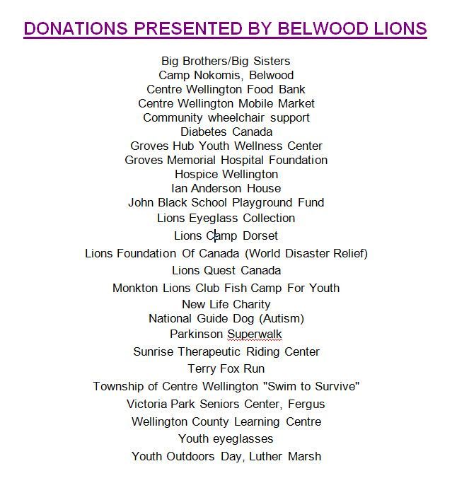 - The Pike Derby and Walleye Tournament is the largest fund raiser that Belwood Lions conducts. Last year (2024), we were able to donate a $10,000 Telescope used for Laproscopic surgery at Groves Hospital, and make notable contributions to the Food Bank, Diabetes Canada, and Wellington Hospice, among others.